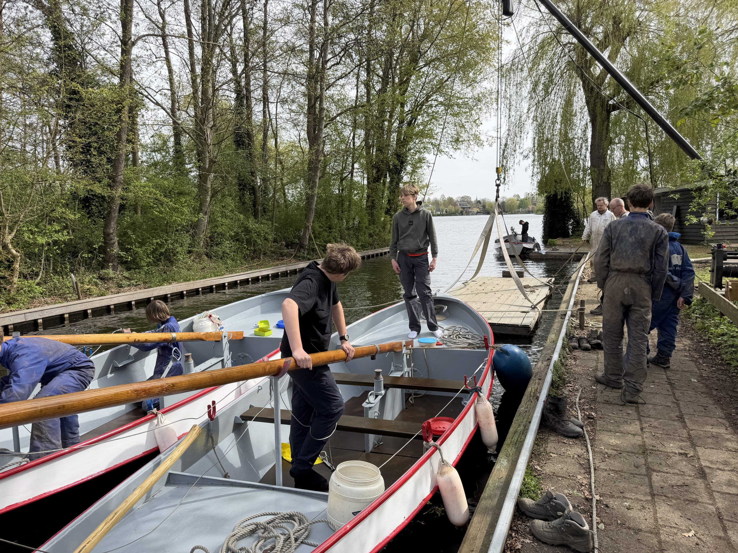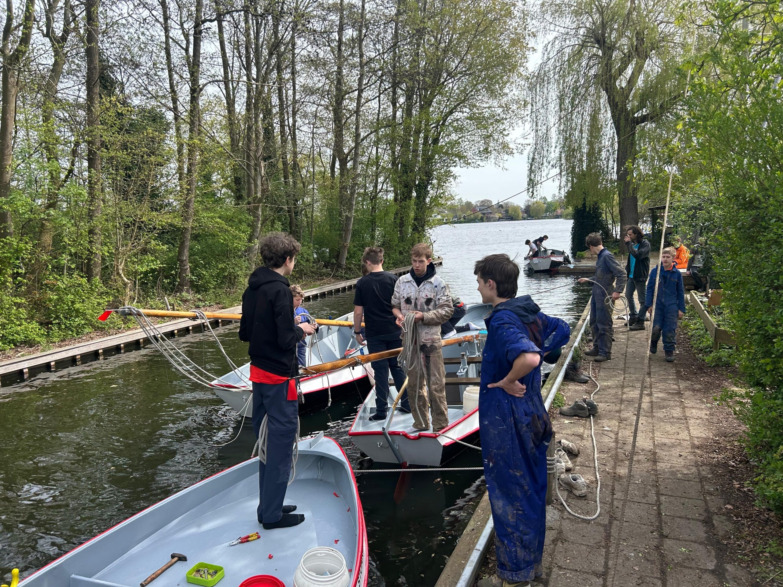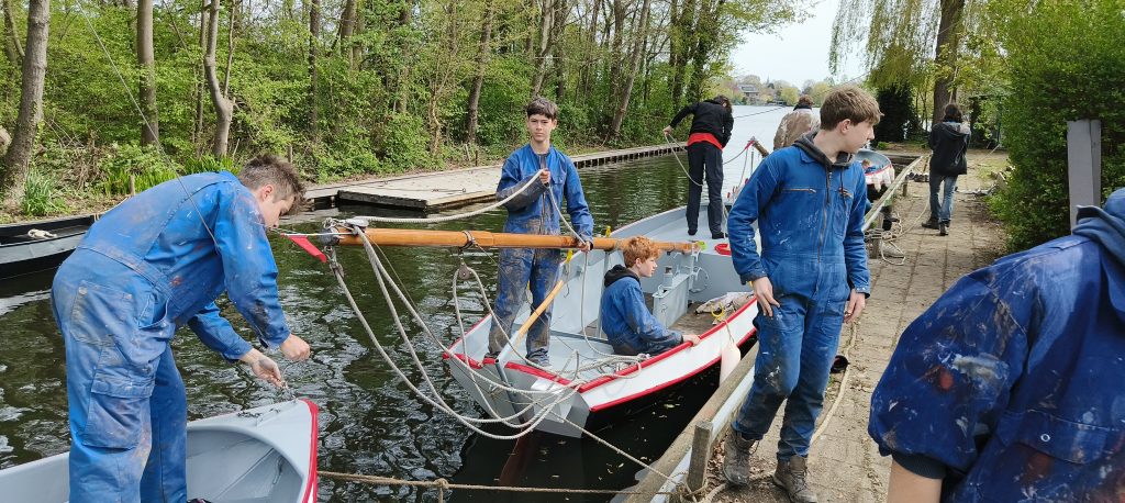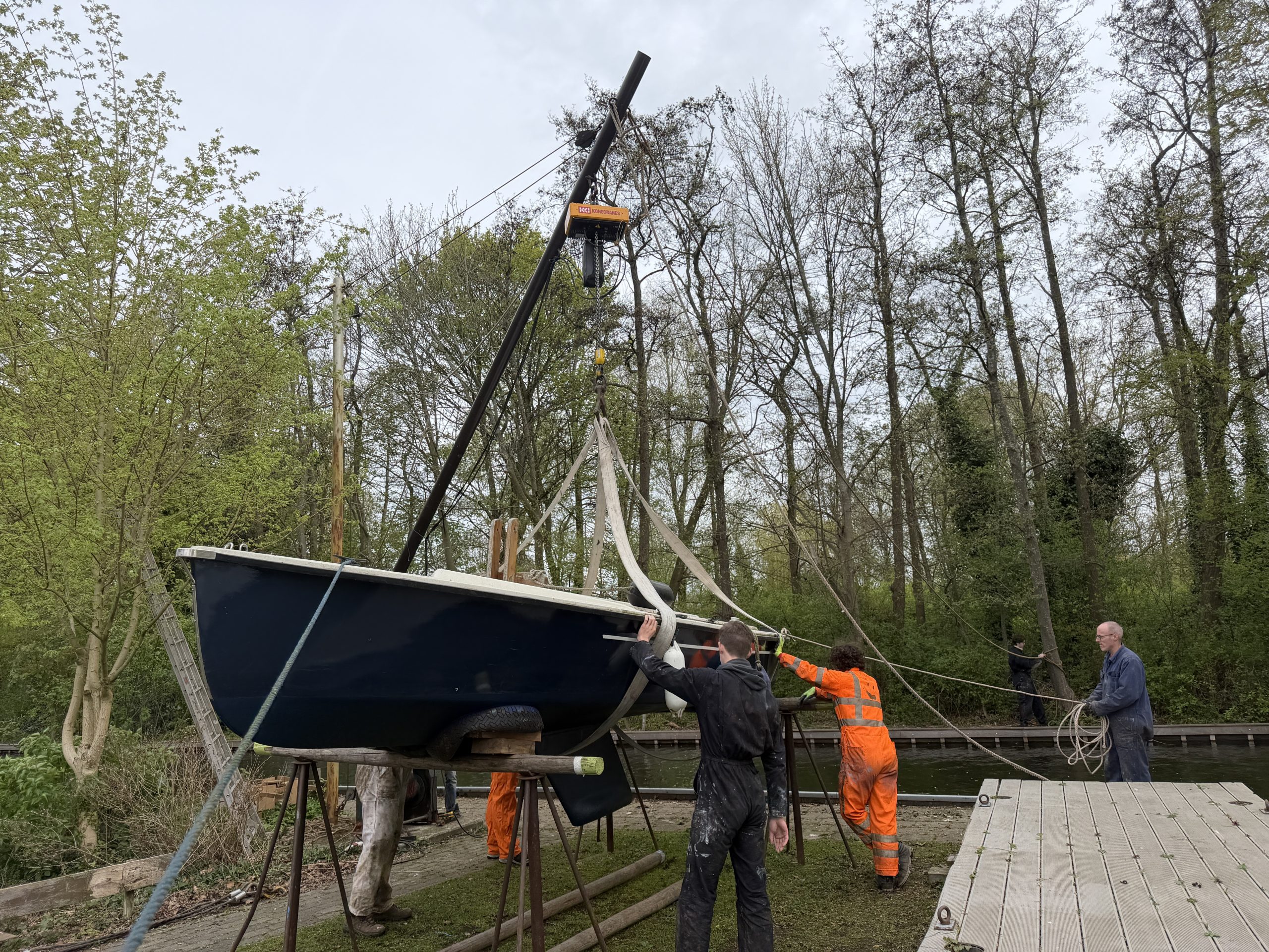 De dag starte vroeg om de hijskraan op te bouwen. Met de leiding en hulp vanuit onze scouting plus groep konden we deze snel in elkaar zetten. Toen de verkenners waren geariveerd hebben we alle bootspullen weer opgezocht om de boten weer op te tuigen. Voor we het wisten hadden we alle boten weer in het water liggen. En konden de masten, denningen en doften in de boot worden gezet.