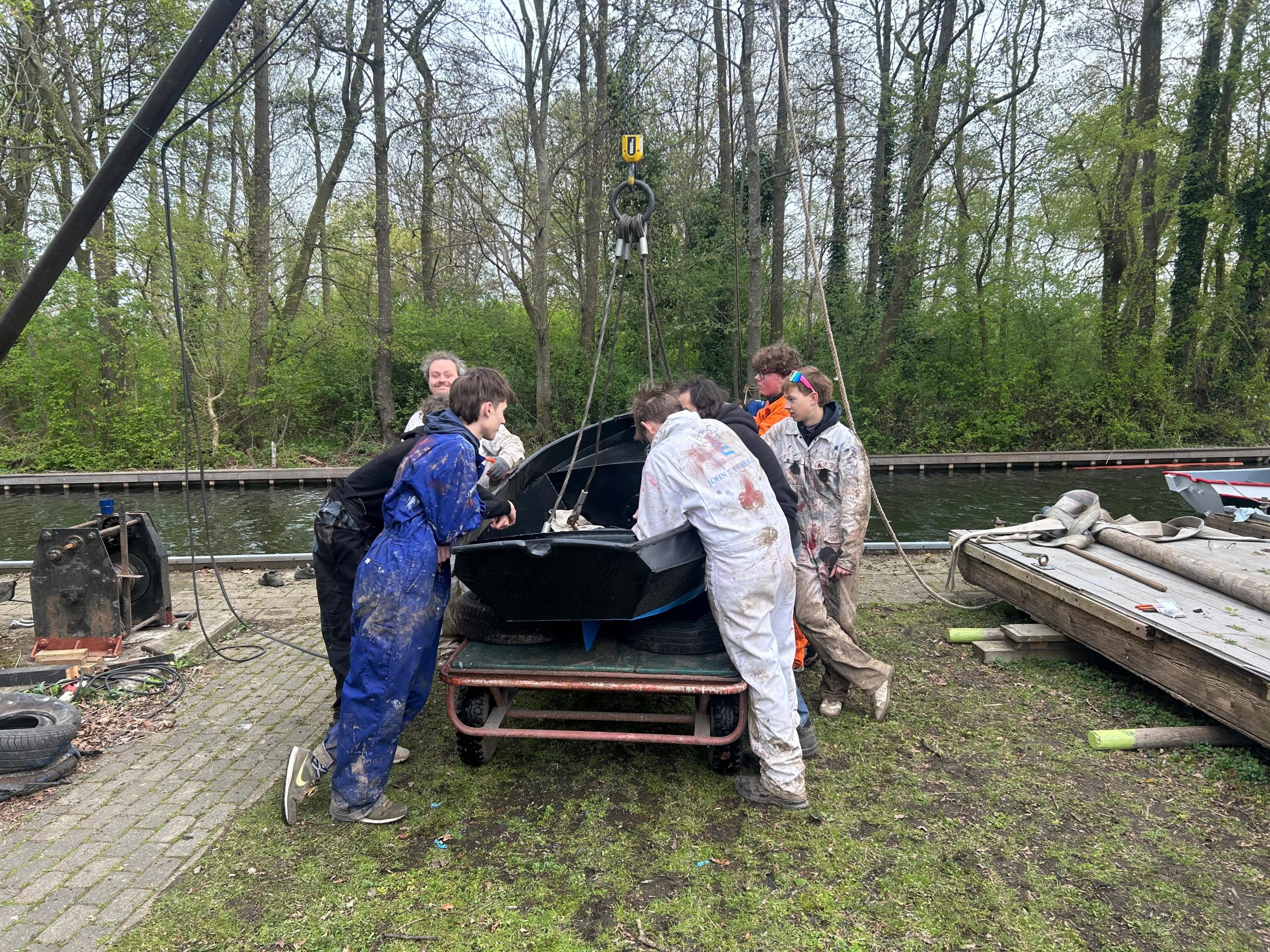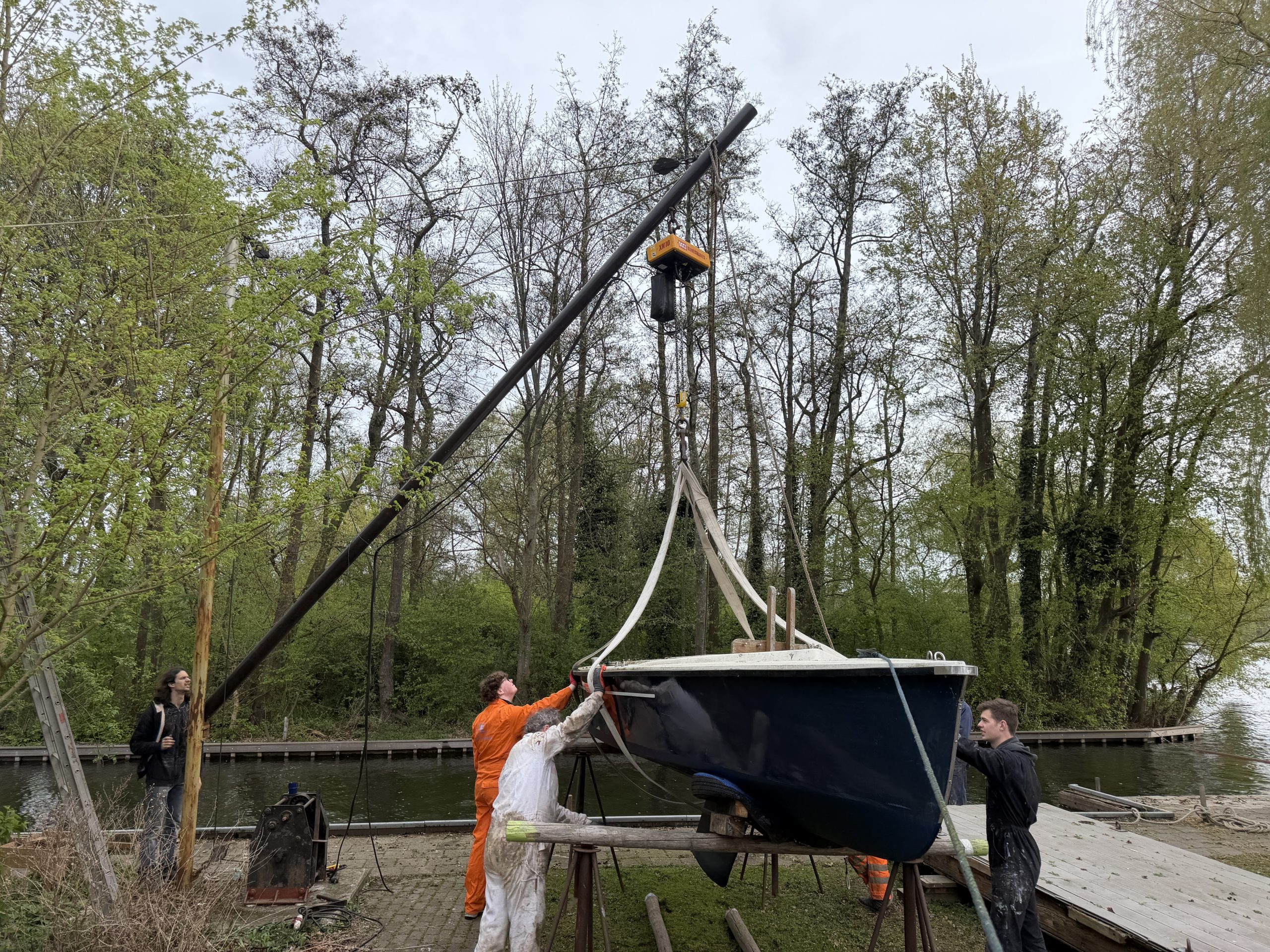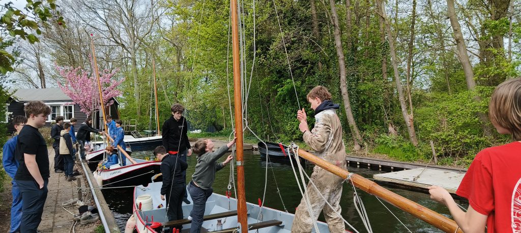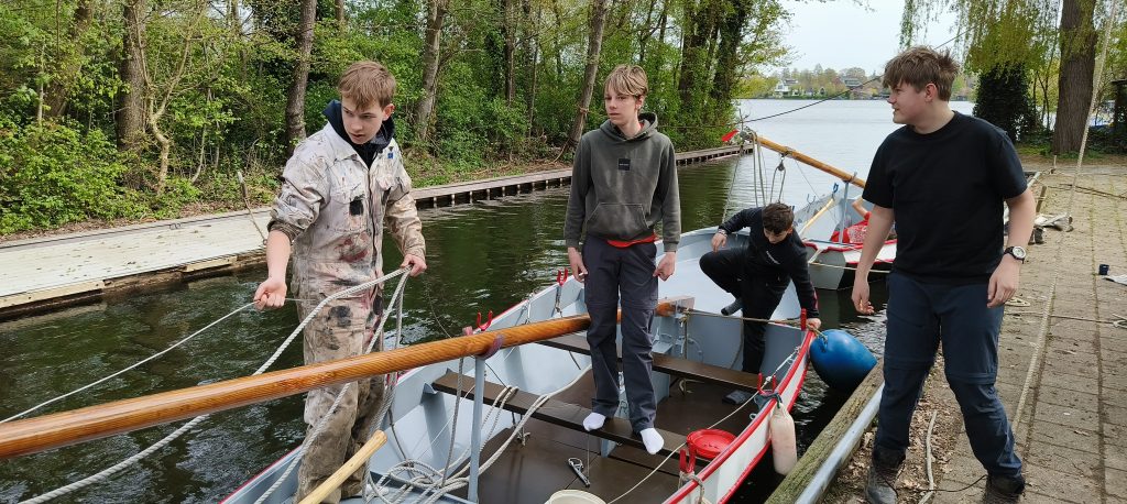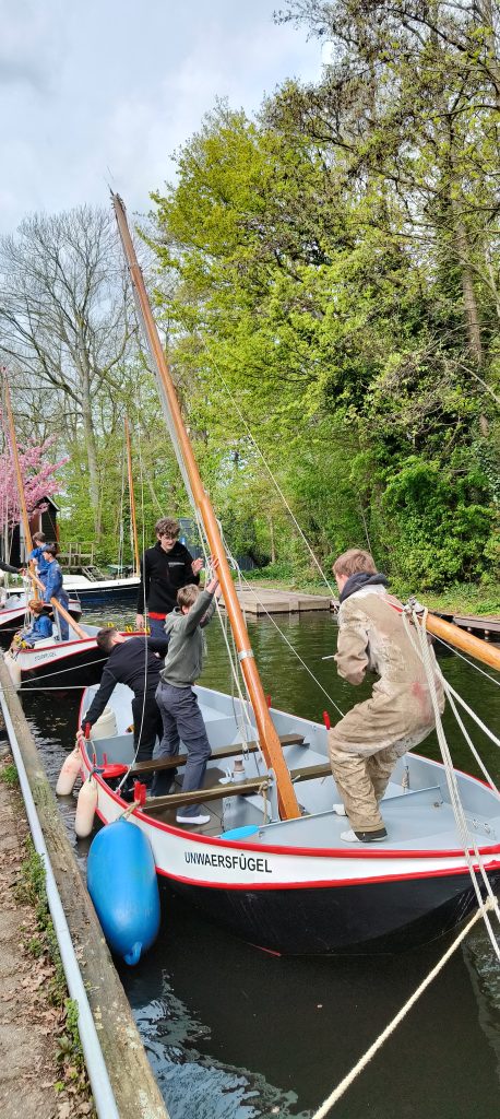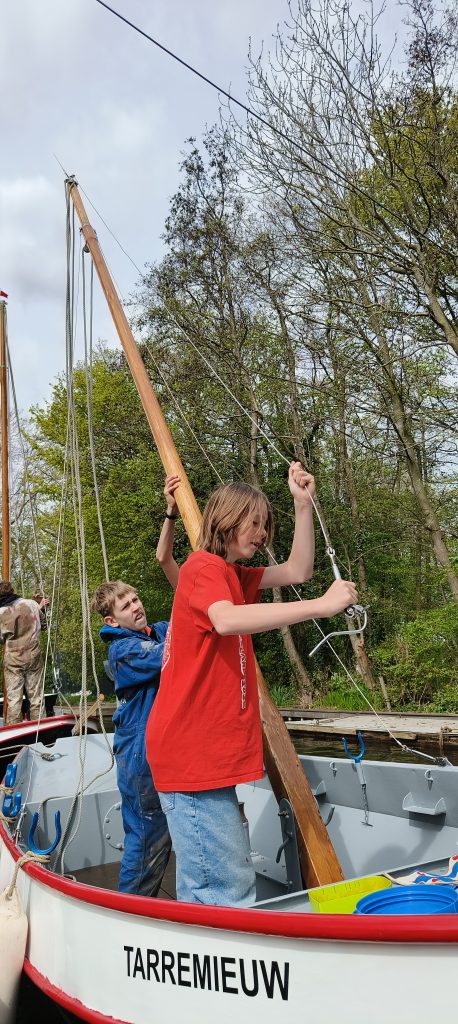De dag starte vroeg om de hijskraan op te bouwen. Met de leiding en hulp vanuit onze scouting plus groep konden we deze snel in elkaar zetten. Toen de verkenners waren geariveerd hebben we alle bootspullen weer opgezocht om de boten weer op te tuigen. Voor we het wisten hadden we alle boten weer in het water liggen. En konden de masten, denningen en doften in de boot worden gezet.