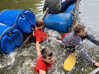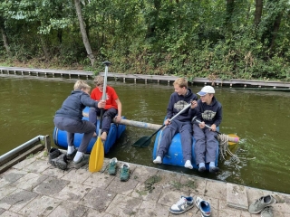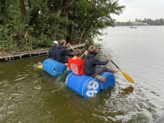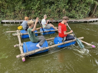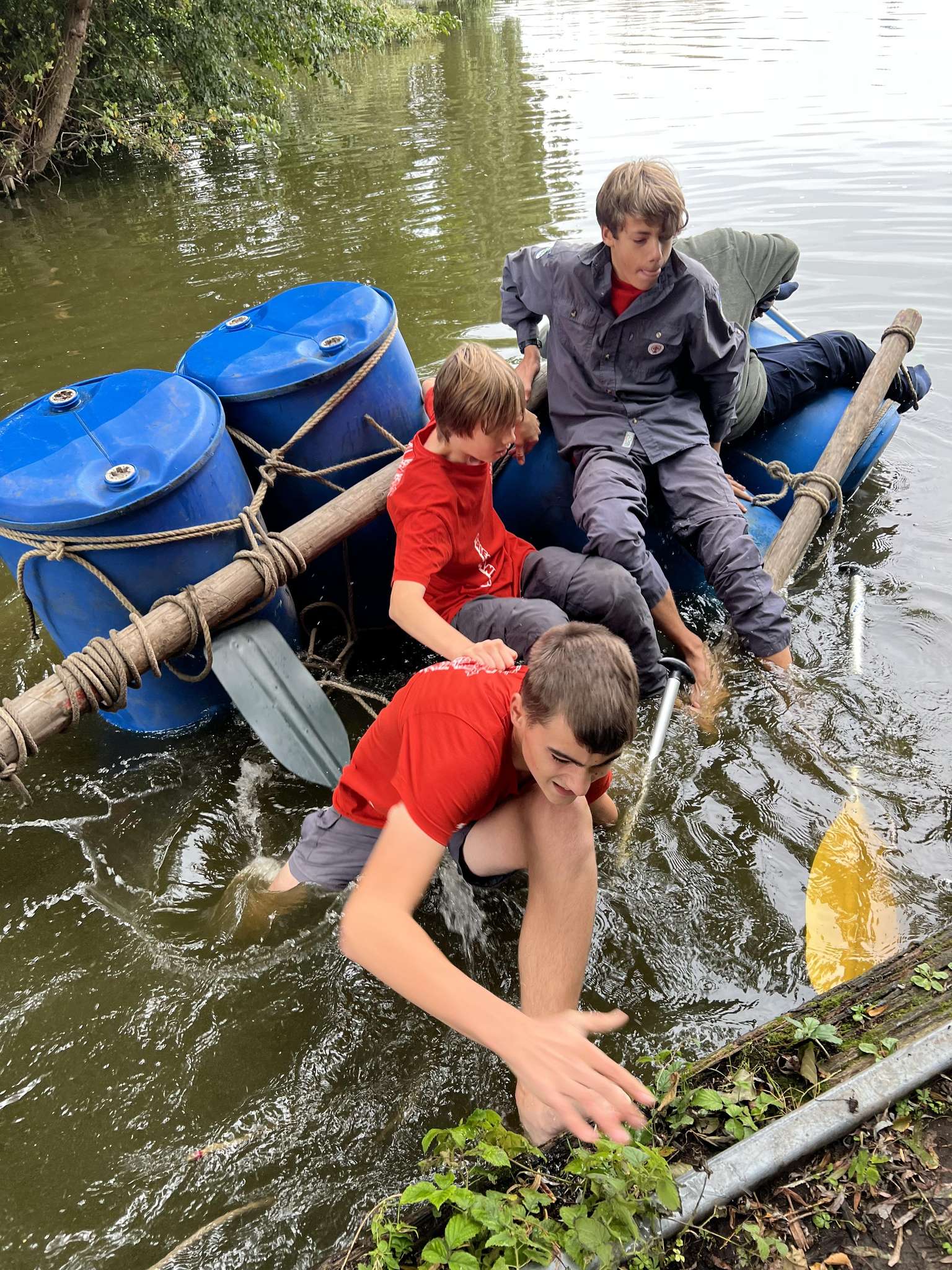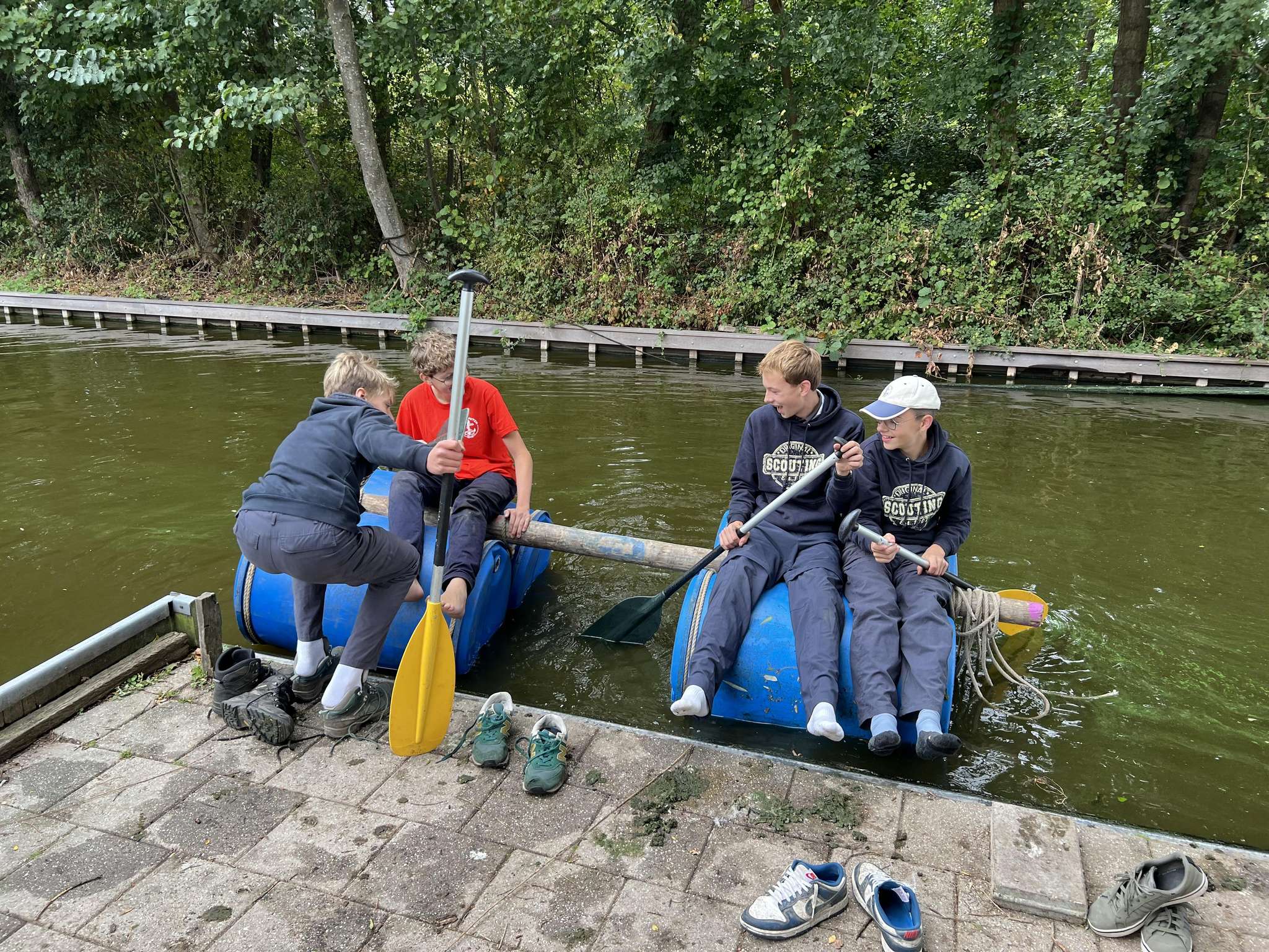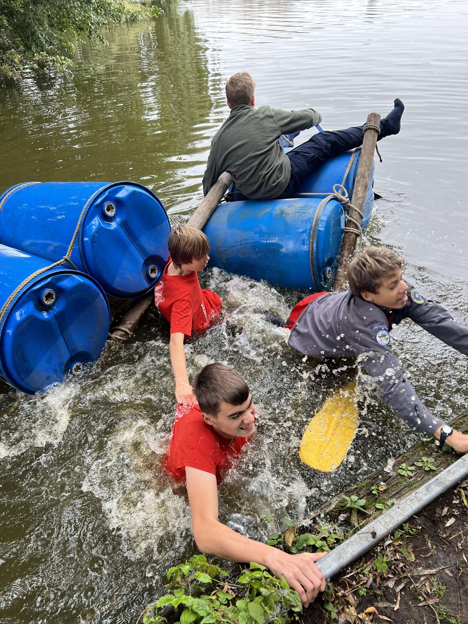 Tot slot werd er fanatiek gewerkt aan het bouwen van vlotten. De ontwerpen waren creatief en soms verrassend, al bleken sommige ontwerpen nét iets minder stevig dan gehoopt… wat voor een aantal verkenners eindigde met een frisse duik.