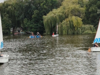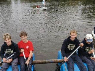 De verkenners hebben een actieve en veelzijdige dag achter de rug. Er werd niet alleen geknutseld, maar ook volop genoten op het water. Met de optimisten hebben ze op de plas een klein parcour afgelegd.